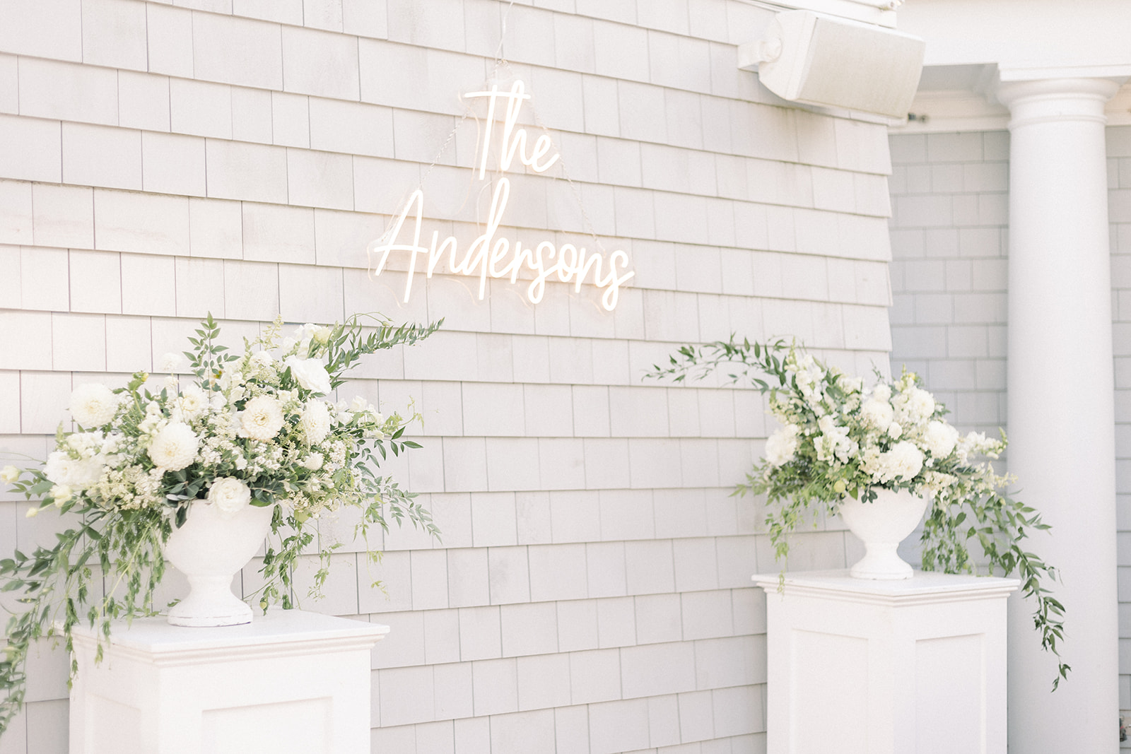 The Pavilion at Pinehills Golf Course served as the idyllic backdrop for this summer soirée. Its sprawling green lawns, surrounded by towering pines, created an enchanting atmosphere for our couple’s special day. As the sun dipped below the horizon, the venue came alive with the warm, natural light of the setting sun, casting a soft glow over the celebration.