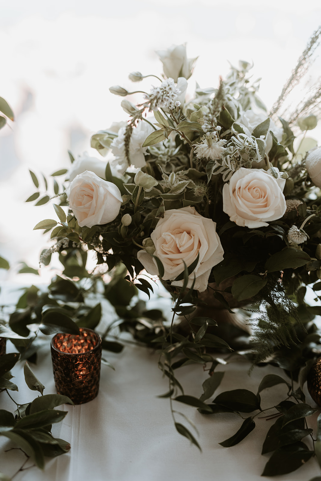 Every detail of this wedding was thoughtfully crafted to evoke a sense of timeless romance. The tables were adorned with lush floral arrangements, cascading greenery, and flickering candlelight, casting a warm, romantic glow.