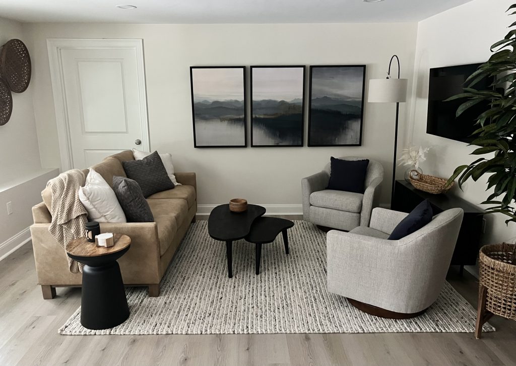 Our vision for this basement project was rooted in the principles of comfort, purposefulness, and functionality, all while maintaining a comfortable and neutral aesthetic, that was able to be lived in by all members of the family. We believed that every element should serve a purpose, and that purpose should harmonize with the overall comfort of the space.