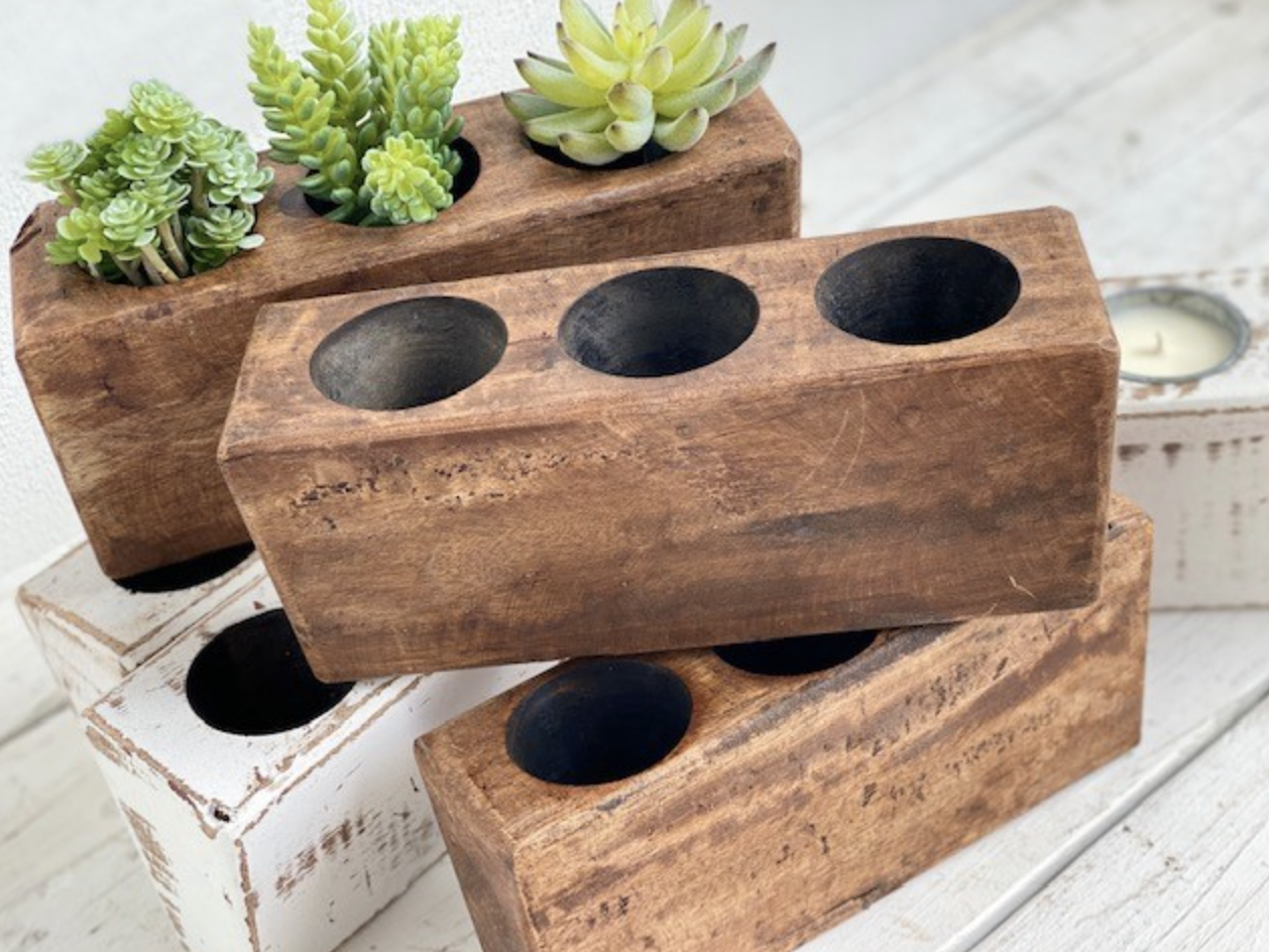 These rustic sugar mold candle holders are quality reproductions of actual cane sugar molds used in Mexico for centuries. Made from Spanish oak, they have the wear and individuality to make the them truly rustic additions to your home decor.