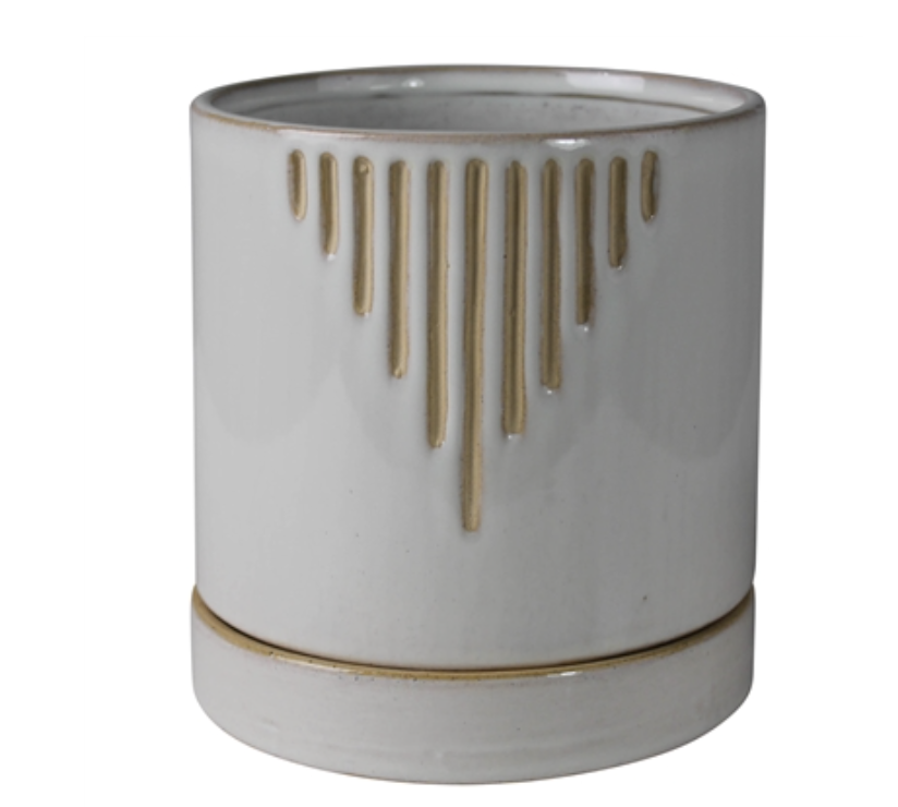 A simple pot and saucer are given a bump up in style with a linear debossed pattern.