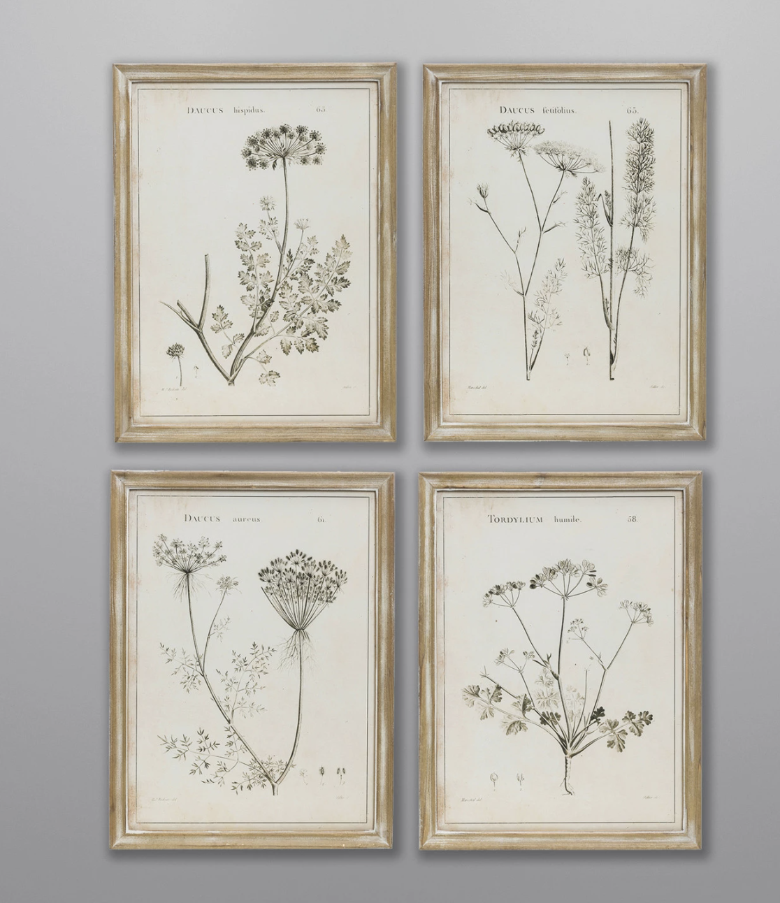 Specifications = 7-3/4″W x 23-1/2″H Wood Framed Glass Wall Décor w/ Vintage Reproduction Botanical Print, 4 Styles