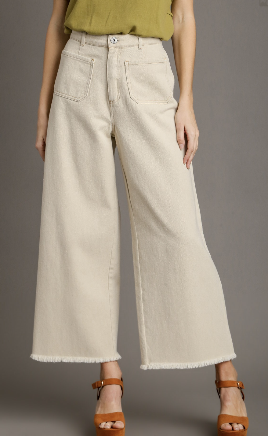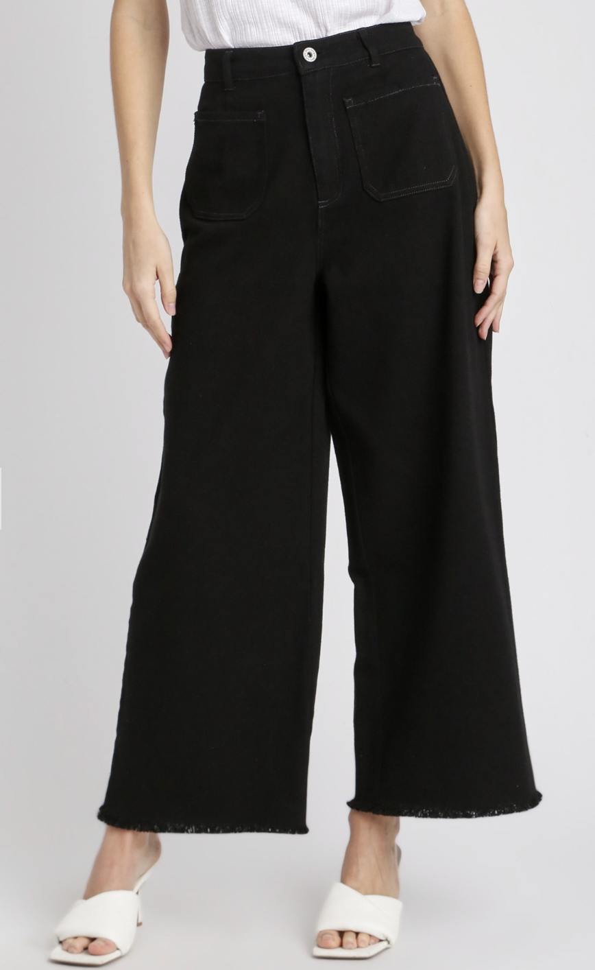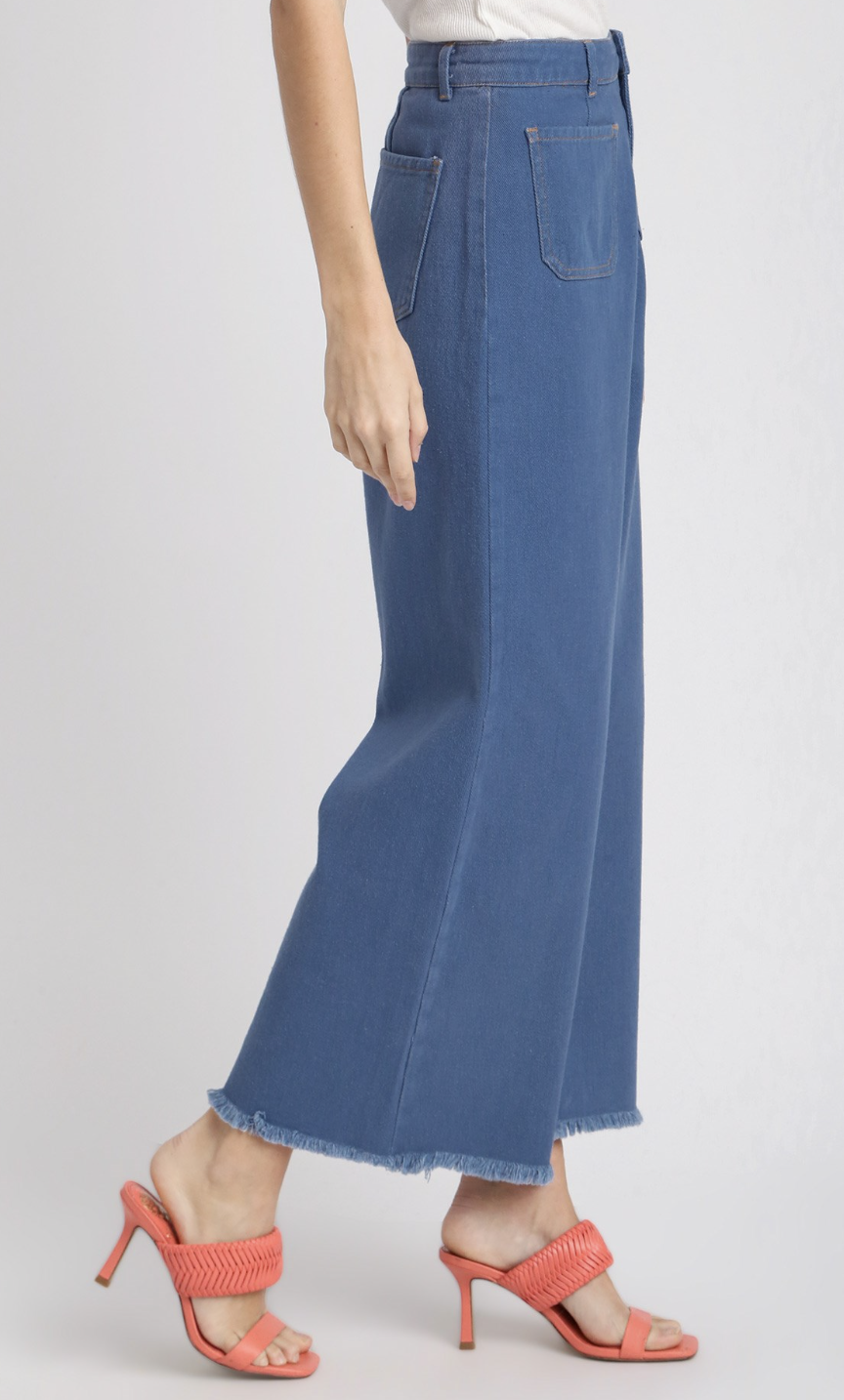 Revitalize your wardrobe with our Candice Wide Leg Pants, featuring a perfect fusion of style and comfort. Crafted for a laid-back yet polished look, these pants boast a regular wash for a versatile aesthetic. The wide leg silhouette exudes modern flair, providing both comfort and on-trend style. With front and back pockets for added functionality, these pants seamlessly blend fashion and practicality. The unfinished frayed hem adds a touch of edge and casual charm, making them a go-to choice for a relaxed yet chic ensemble.