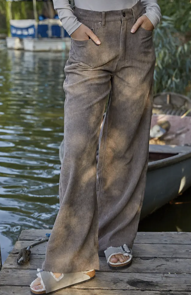 Our high-rise corduroy pants come in a chocolate color and are a great addition to add to your closet. These pants run on the tighter end and have a wide pant leg, a perfect trendy pant for this season.